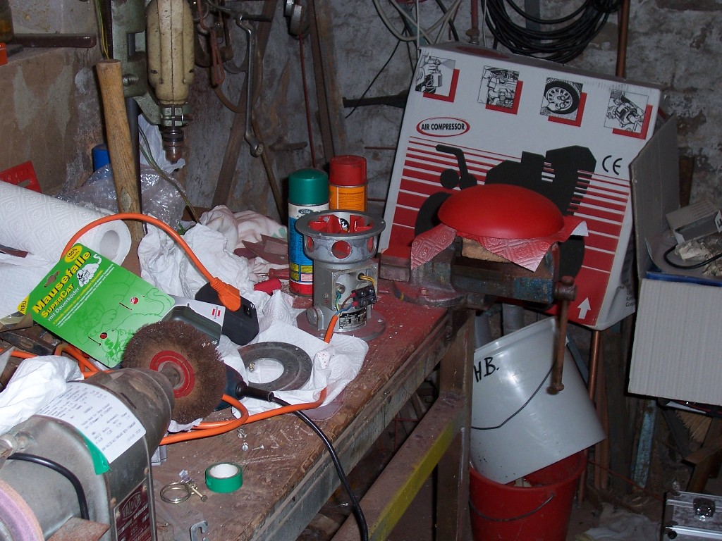Hier sieht man die demontierte IMI, und das schon in rot lackierte Schutzdach.